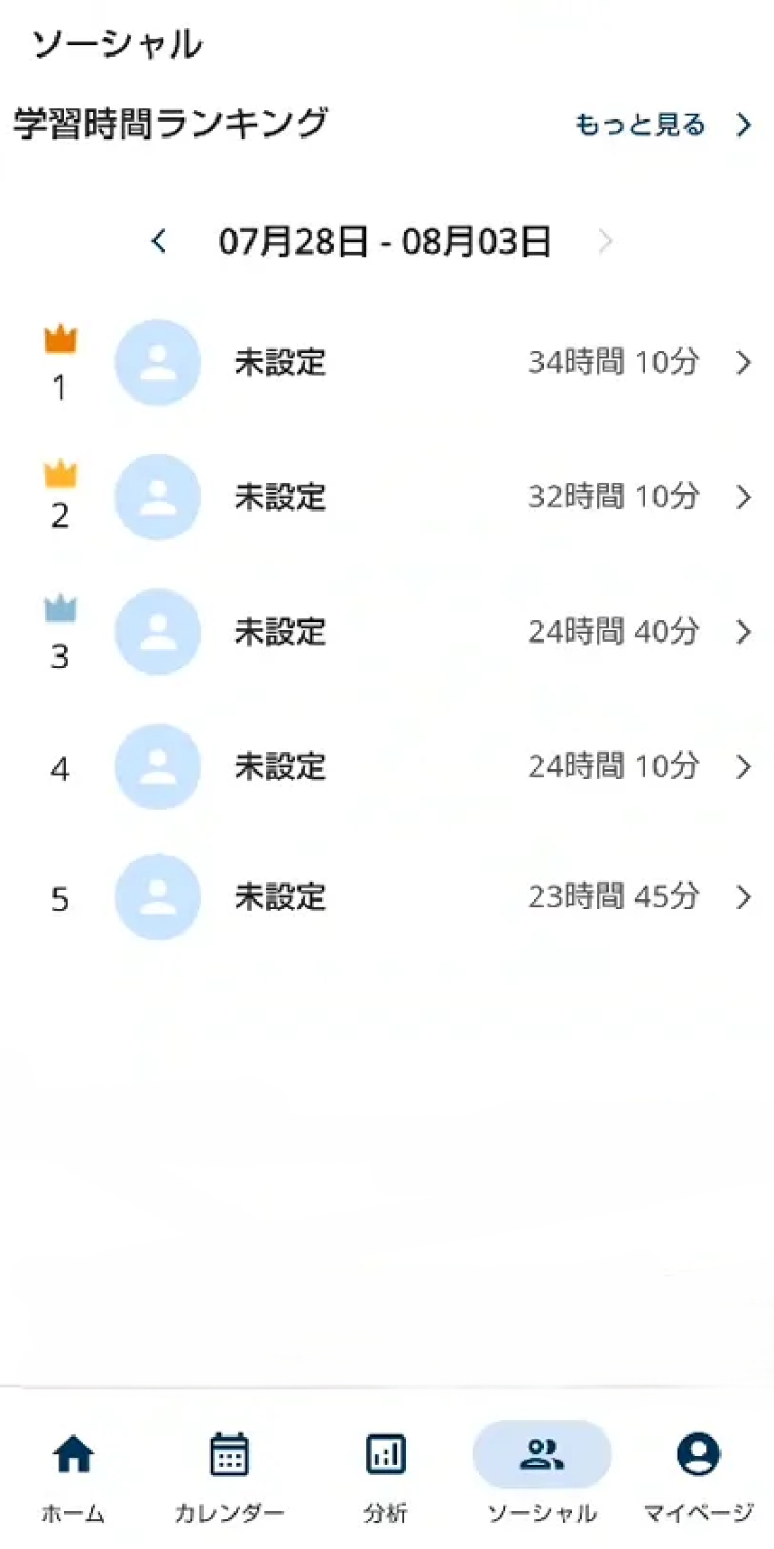 2. すべての受講者の学習時間がランキングで表示されます