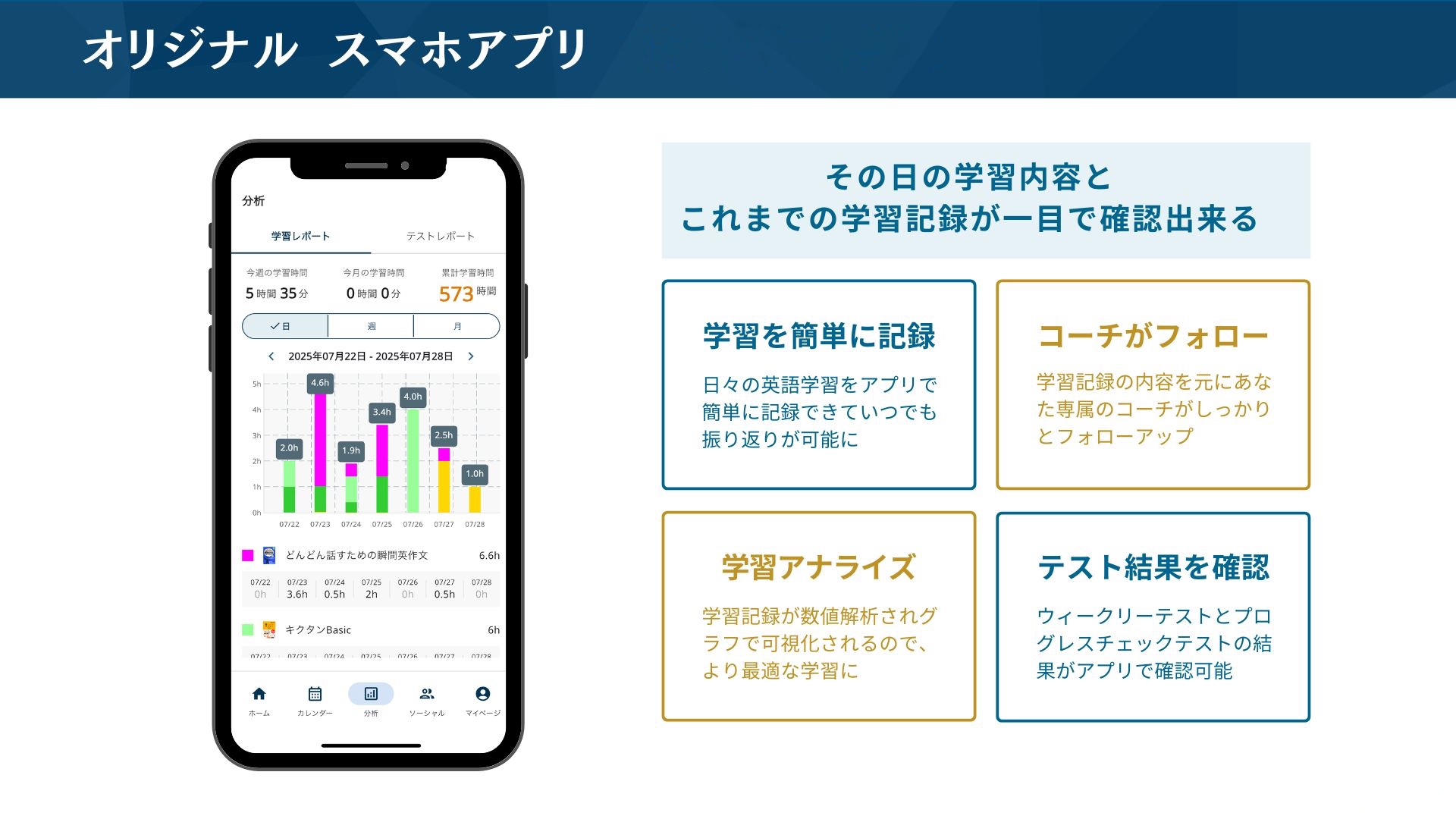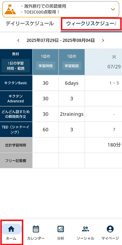1週間の学習スケジュールは学習記録アプリ「コアラーニング MGR」内でご確認いただけます。