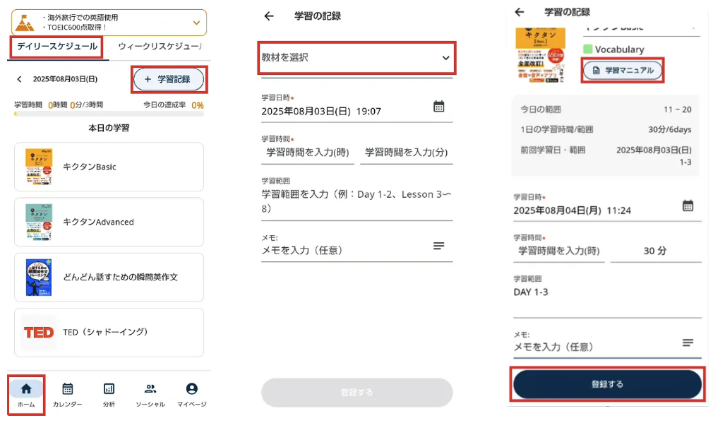 学習記録アプリの使用方法