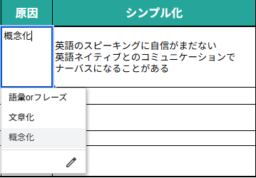 ▷「概念化」が原因の場合:「シンプル化」の記入も