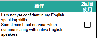 ※同じトピックで2回目のレッスンを受けた際に、1回目の復習で作成した表現を使えた場合は、「2回目使用」にチェックを入れてください。繰り返し使うことで、定着がより深まります。