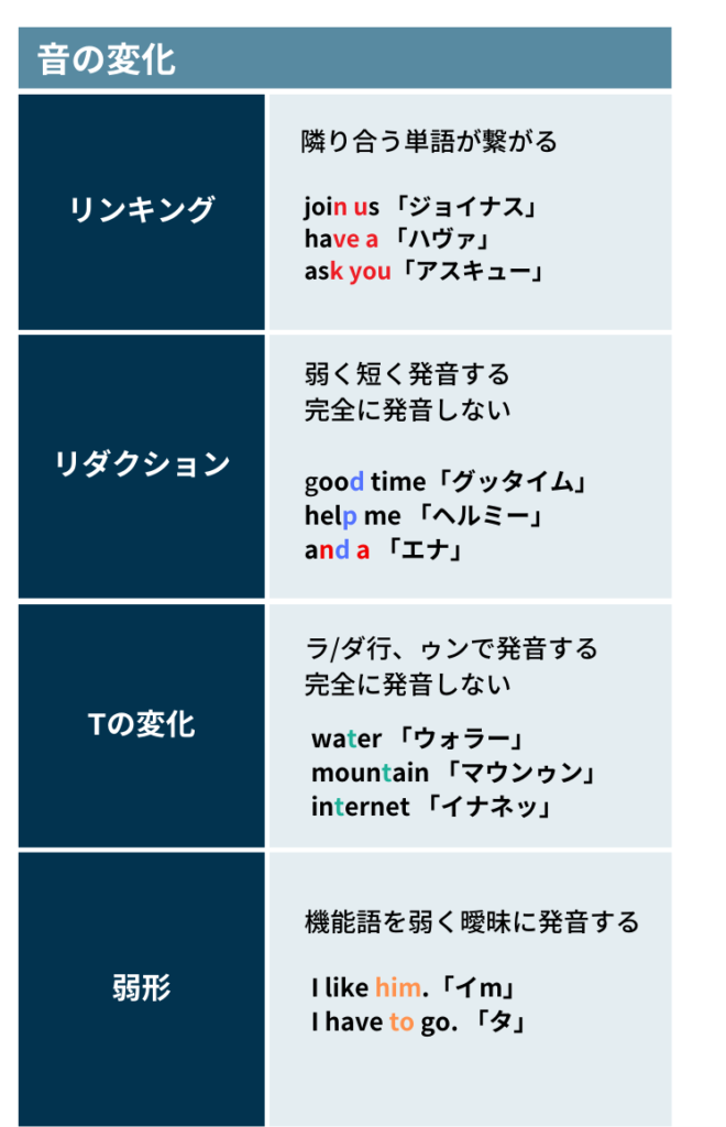 音の繋がりや消失、変化を捉えることでシャドーイング時も意識しながら発話することができるようになります。