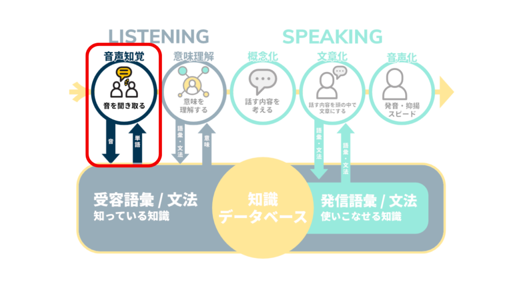 自信がない部分や聴き取れなかった部分は声が小さくなりがちです。最初から完璧を目指さずに、だいたいで大丈夫なので、はっきり声に出すことを意識しましょう。しっかり発話することで、聞き取れない箇所の音の変化、発音に意識がいくので、効率よく音声知覚が鍛えられます。