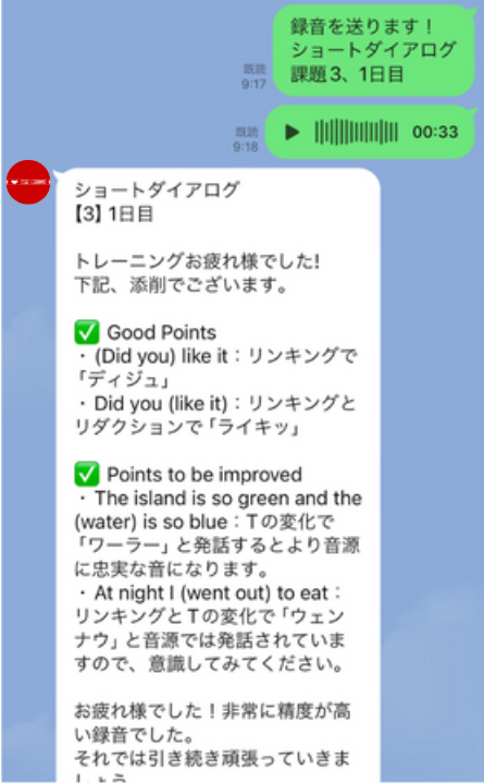 毎日コーチが録音を確認して、正しく音の変化を捉えられているかをフィードバックします。