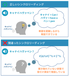 単なる「音マネ」にならないよう、シンクロリーディングをしながら「今なんの単語を発話したのか」を把握しながら行うことを意識してください。